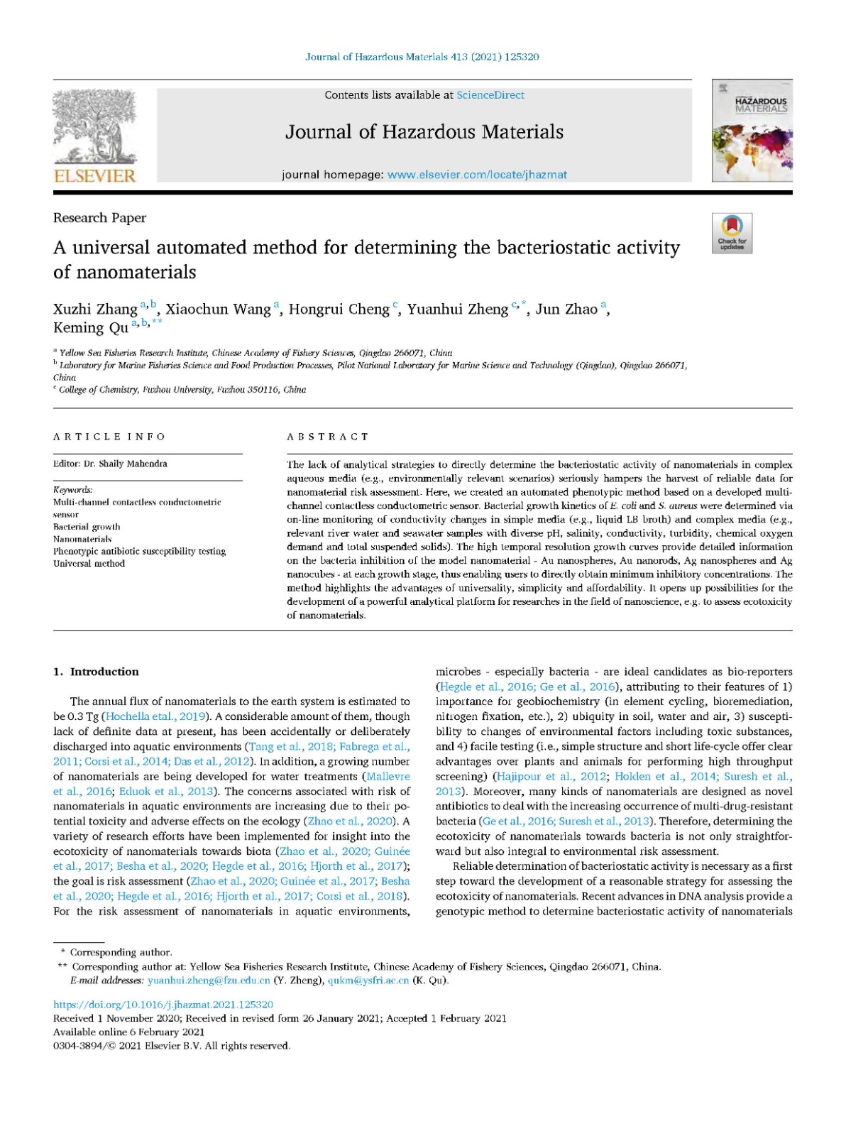 A universal automated method for determining the bacteriostatic activityof nanomaterials